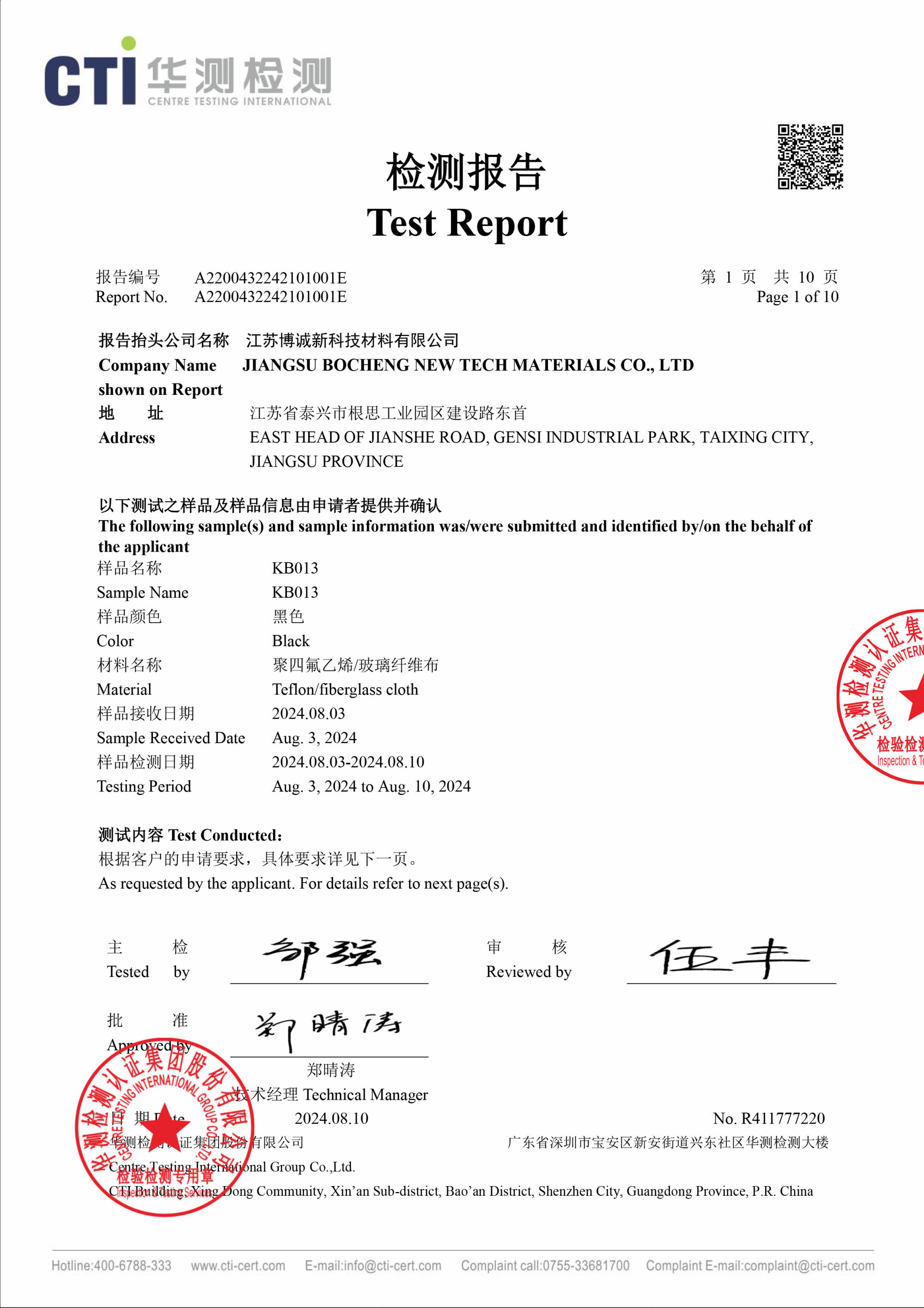 Jiangsu Bocheng New Tech Materials Co, Ltd es una empresa especializada en la producción y venta de diversos materiales compuestos industriales de alto rendimiento. Sus principales productos incluyen: bandas de PTFE-Teflón, tejidos de PTFE-Teflón, tejidos de silicona, etc. La empresa cuenta con técnicos y trabajadores experimentados, un estricto sistema de control de calidad y un sistema de servicio, atendiendo a clientes de industrias como textil, tintura, impresión, secado de alimentos, petróleo, acero, química, farmacéutica, etc., que necesitan materiales plásticos de alto rendimiento resistentes a altas temperaturas y a la corrosión. Nuestros productos ya se han distribuido por toda China y se exportan a muchos países extranjeros.